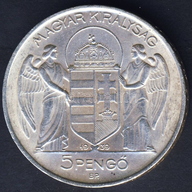 1939. 5P Ag "Horthy balra" T:2- apró ph. https://www.darabanth.com/de/94-Fernauktion/94.0/Numismatik/~283/1939-5P-Ag-Horthy-balra-T2-apro-ph~II216416