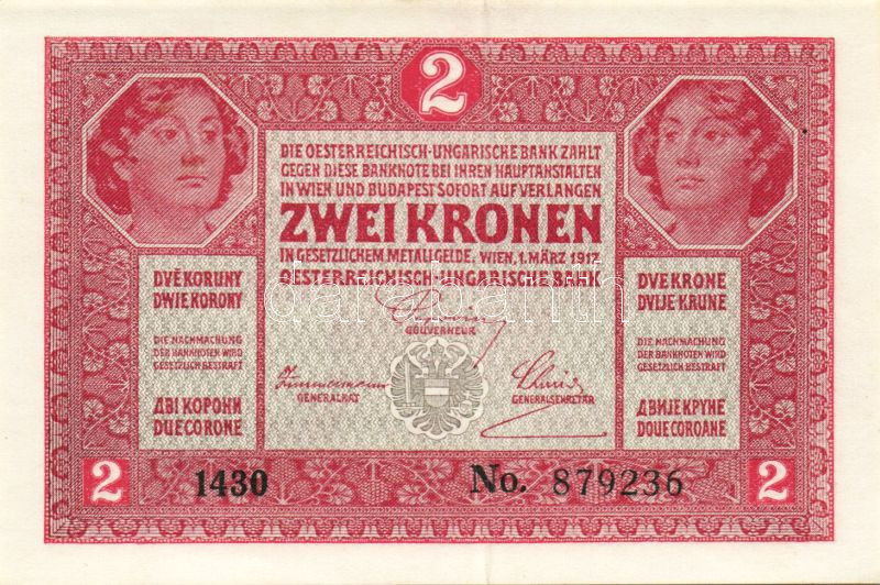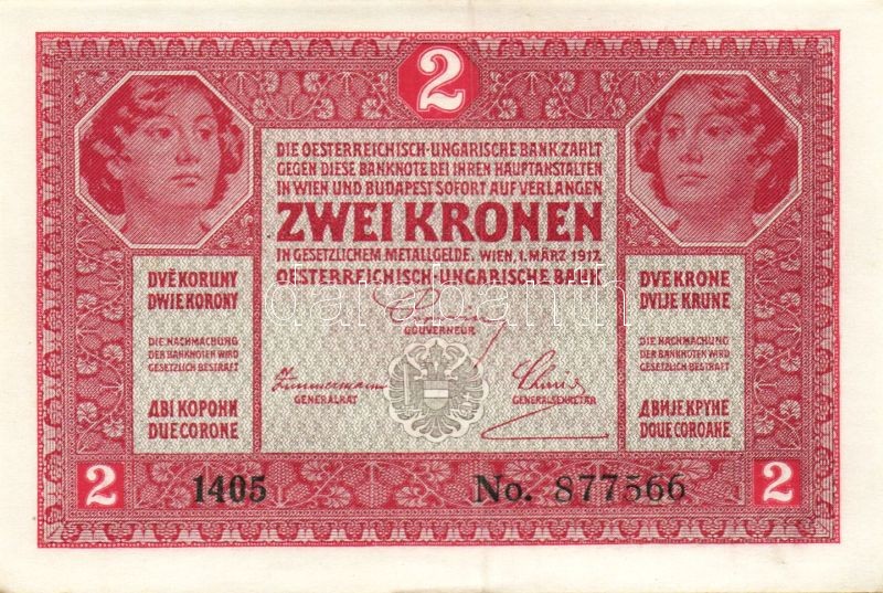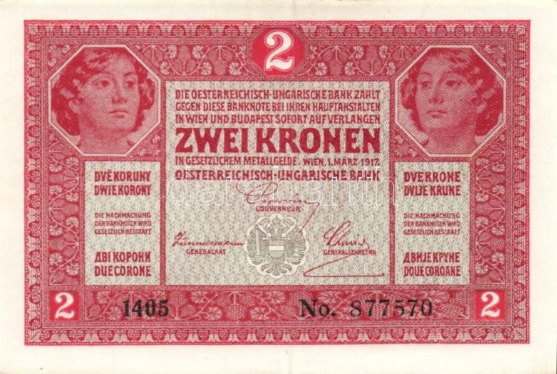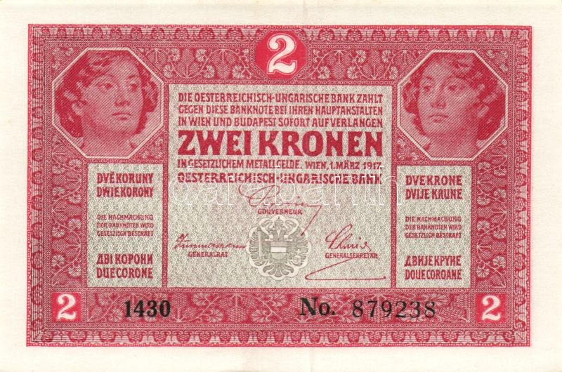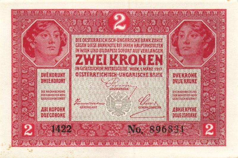 1917. 2K (5x) benne kevés ugrású sorszámok T:I https://www.darabanth.com/de/94-Fernauktion/94.0/Numismatik/~285/1917-2K-5x-benne-keves-ugrasu-sorszamok-TI~II216348