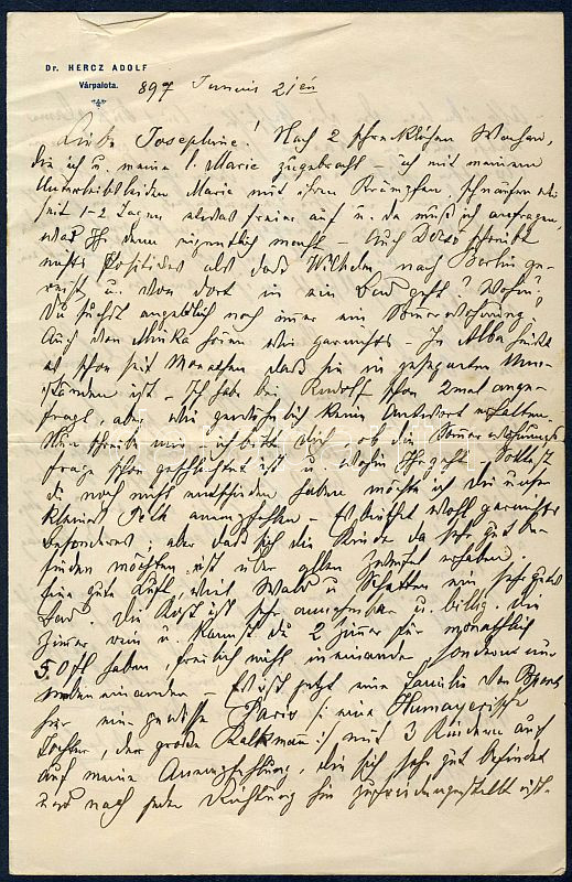 1897 Hercz Adolf várpalotai orvos, szakíró német nyelvű levele https://www.darabanth.com/de/95-Fernauktion/95.0/Andere-Sammelgebiete/~333/1897-Hercz-Adolf-varpalotai-orvos-szakiro-nemet-nyelvu-levele~II216793