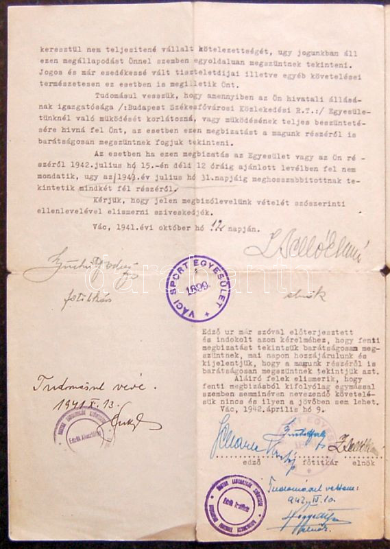 1941 Váci Sportegyesület labdarúgó edzői szerződése aláírásokkal https://www.darabanth.com/de/95-Fernauktion/95.0/Andere-Sammelgebiete/~333/1941-Vaci-Sportegyesulet-labdarugo-edzoi-szerzodese-alairasokkal~II219282