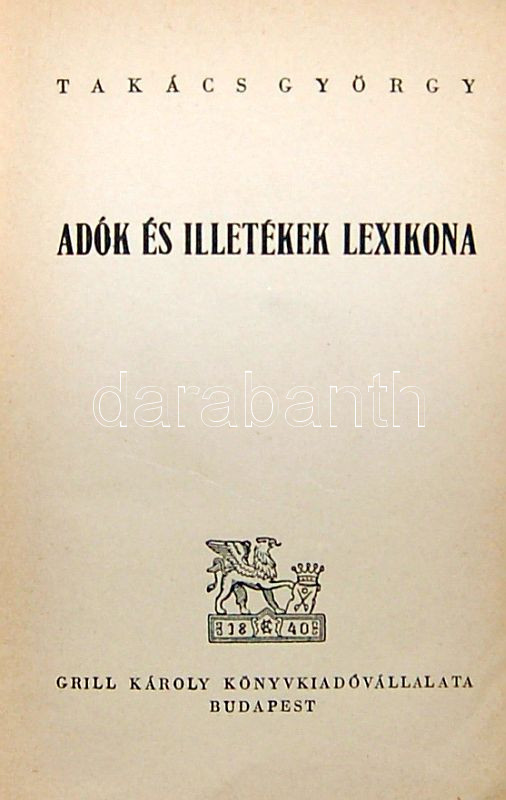 1943 Adók és illetékek könyve https://www.darabanth.com/de/95-Fernauktion/95.0/Andere-Sammelgebiete/~339/1943-Adok-es-illetekek-konyve~II219208