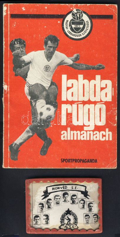 Beschreibung: 1950-es évek Honvéd SE. fotó tükörre ragasztva + Labdarúgó almanach könyv