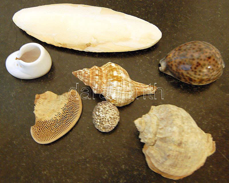 Beschreibung: 6 db kagyló + 1 db kis porceláncipő