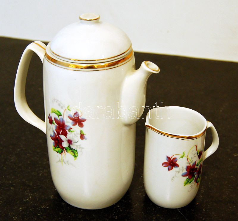 Beschreibung: Hollóházi porcelán kiöntő és csésze