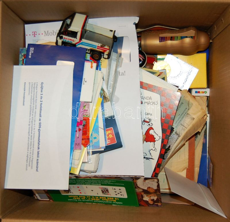 Óriási átnézetlen vegyes papírrégiség és bolhapiac tétel TV-s dobozban: régi okmányok, levelek, képeslapok, katonai gombok, egyéb bolhapiacra való áru. Érdemes megnézni!