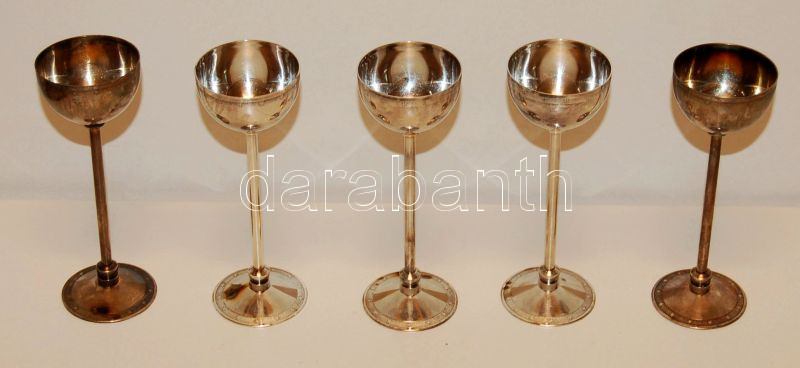 Beschreibung: XX. század eleje: 5 db ezüstözött likőröspohár