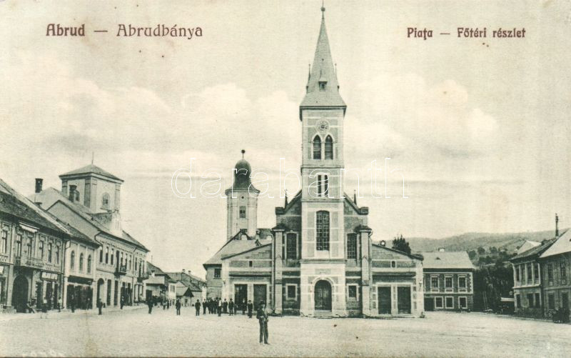 Abrudbánya main square with church https://www.darabanth.com/de/95-Fernauktion/95.0/Ansichtskarten/~347/Abrudbanya-main-square-with-church~II218407