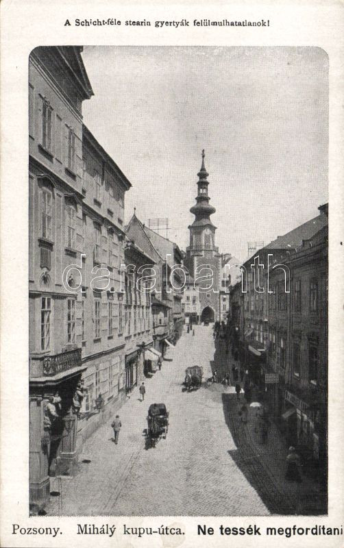 Pozsony Mihály kapu street, commercial on the back https://www.darabanth.com/de/95-Fernauktion/95.0/Ansichtskarten/~368/Pozsony-Mihaly-kapu-street-commercial-on-the-back~II218752