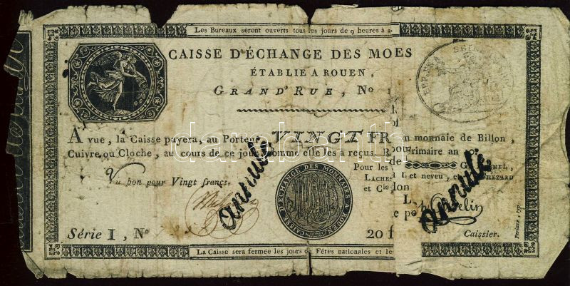 Beschreibung: Franciaország / Rouen 1797-1803. 20Fr T:IV- R!