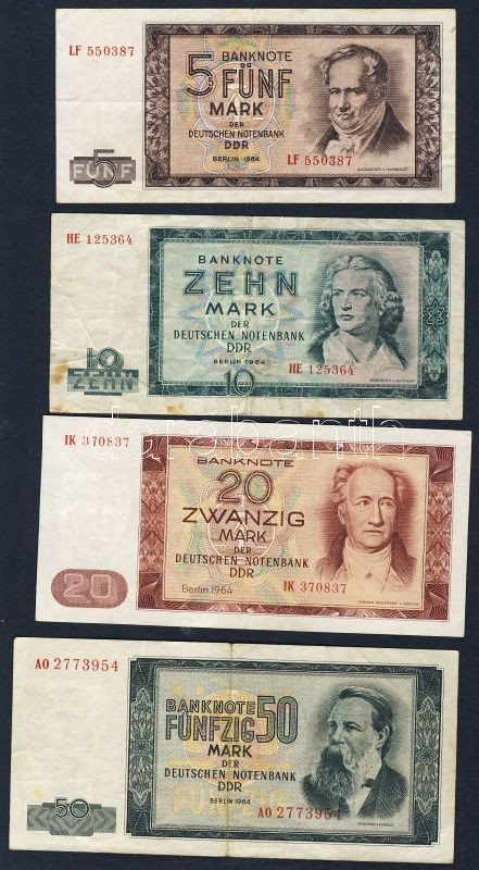 Beschreibung: NDK 1964. 5M, 10M, 20M, 50M, 100M komplett sor variánsok nélkül T:II,III Összesen 5klf db!