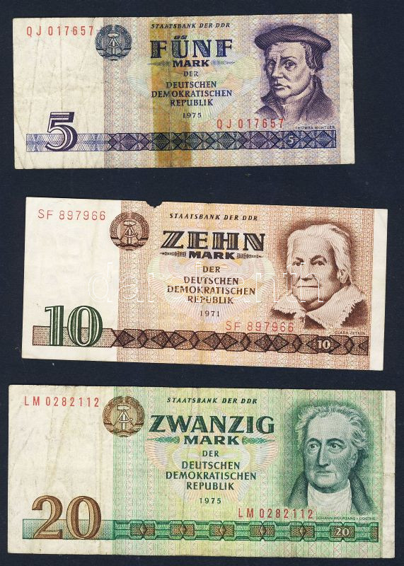 Beschreibung: NDK 1971-75. 5M, 10M, 20M, 50M, 100M komplett sor variánsok nélkül T:II,III Összesen 5klf db!