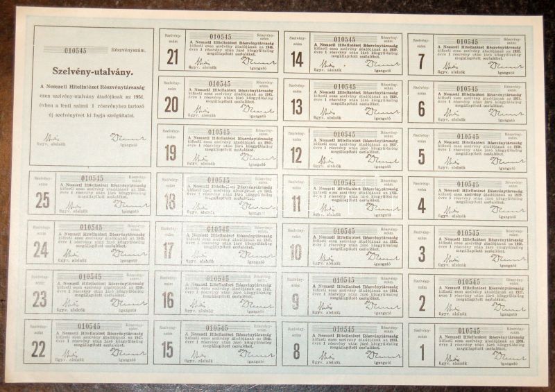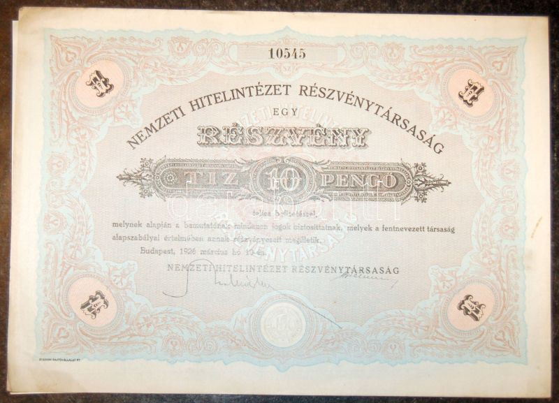1926. "Nemzeti Hitelintézet Részvénytársaság" részvénye 10P-ről, szelv... https://www.darabanth.com/de/95-Fernauktion/95.0/Numismatik/~377/1926-Nemzeti-Hitelintezet-Reszvenytarsasag-reszvenye-10P-rol-szelvenyekkel~II216993