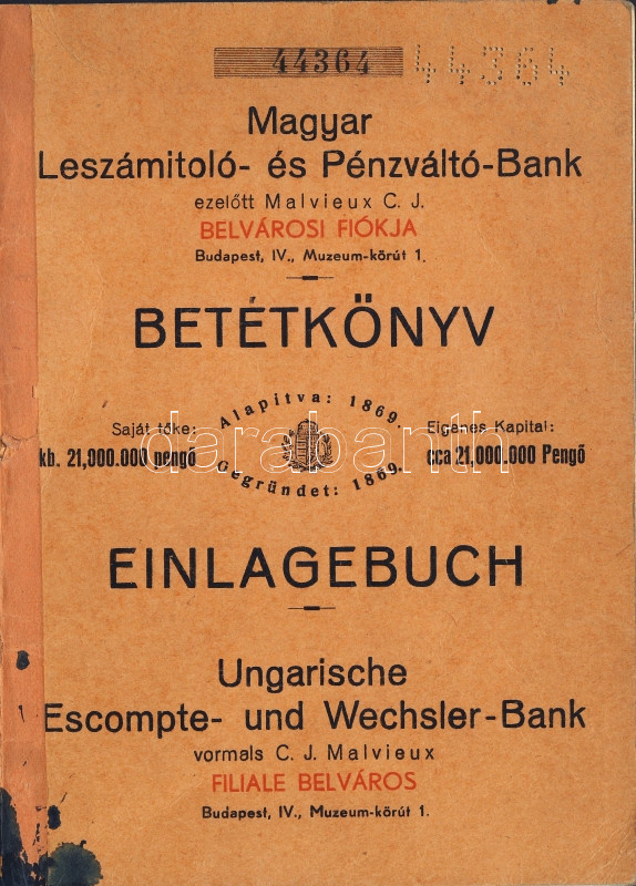 1939. "Magyar Leszámitoló és Pénzváltó-Bank" betétkönyve kitöltve, jó ... https://www.darabanth.com/de/95-Fernauktion/95.0/Numismatik/~377/1939-Magyar-Leszamitolo-es-Penzvalto-Bank-betetkonyve-kitoltve-jo-allapotban~II219286