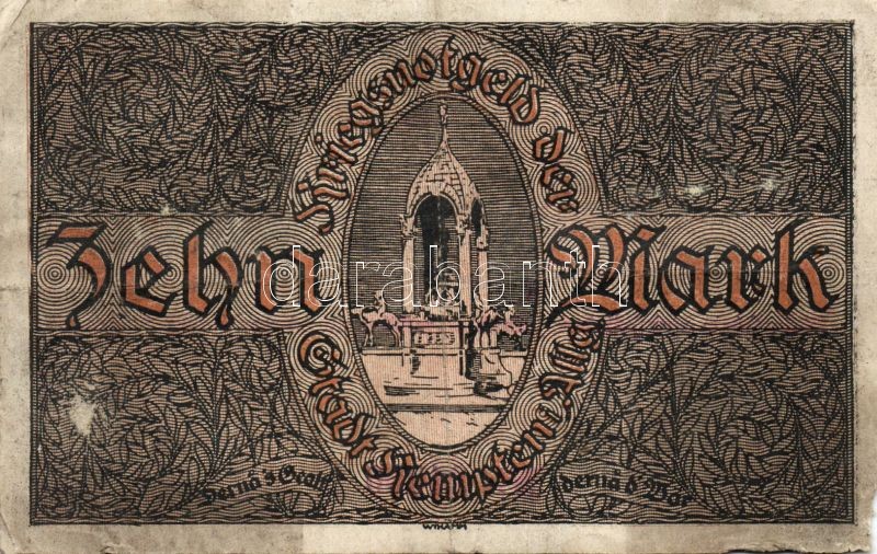 Beschreibung: Német Birodalom/Császárság/ Kempten 1918. 10M (2x) egymásutáni sorszámmal T:II,III-