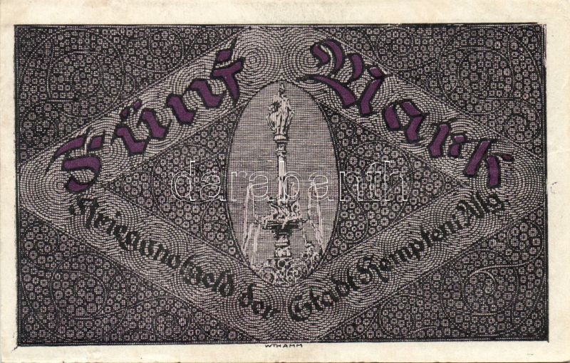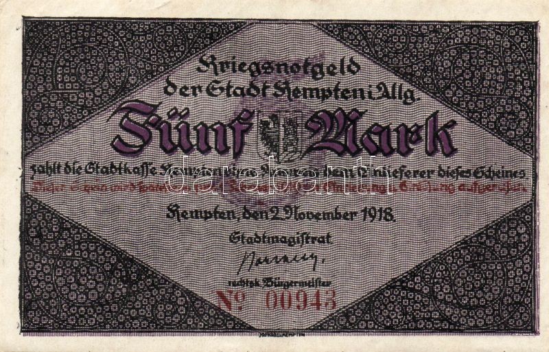 Beschreibung: Német Birodalom/Császárság/ Kempten 1918. 5M(2x) egymásutáni sorszámmal T:II
