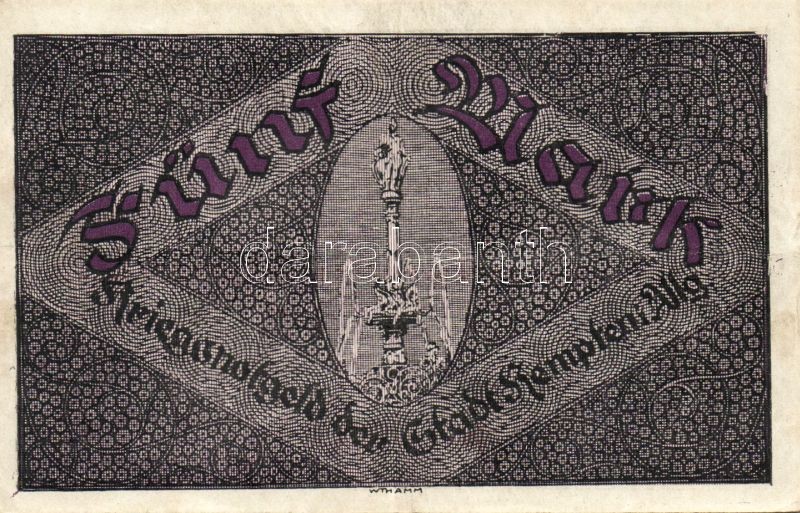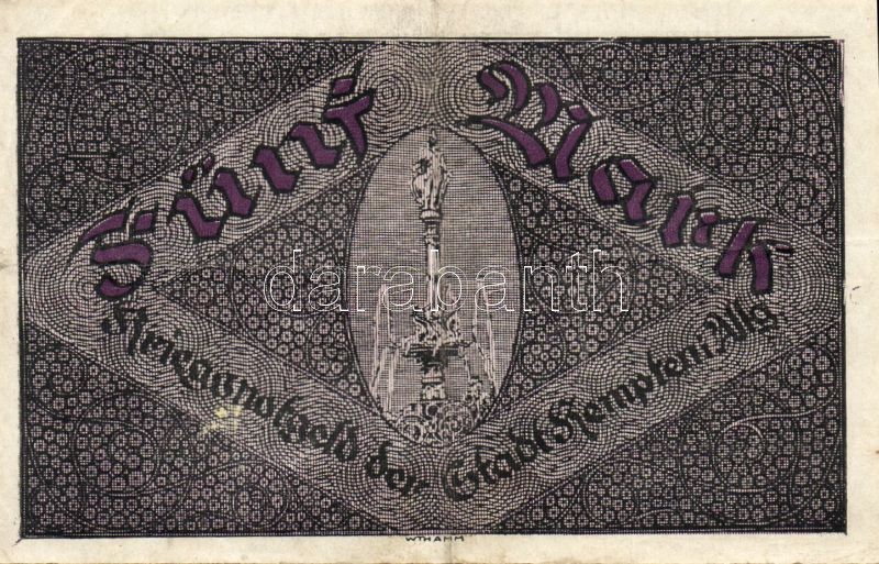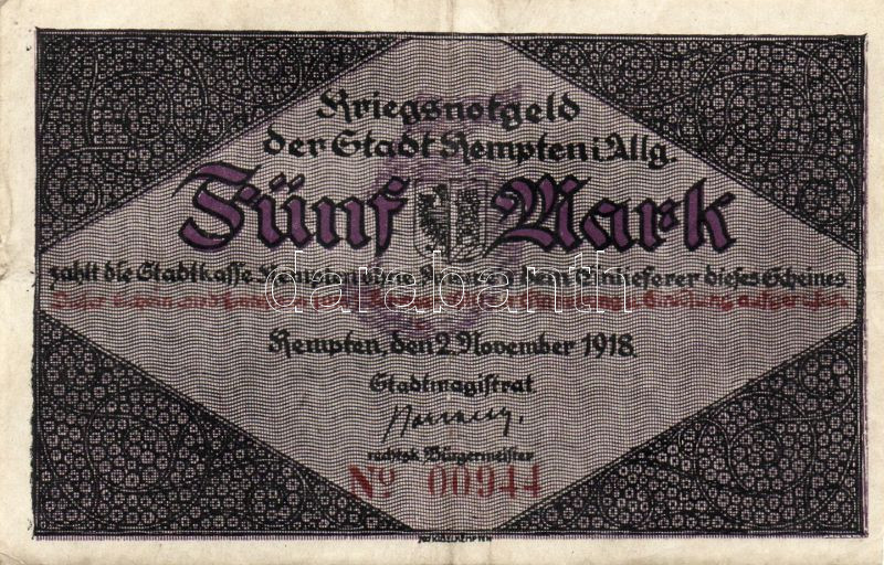 Német Birodalom/Császárság/ Kempten 1918. 5M(2x) egymásutáni sorszámma... https://www.darabanth.com/de/95-Fernauktion/95.0/Numismatik/~379/Nemet-BirodalomCsaszarsag-Kempten-1918-5M2x-egymasutani-sorszammal-TII~II215006