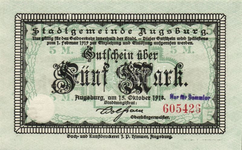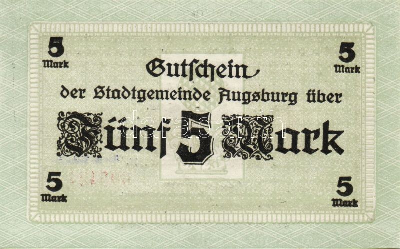 Beschreibung: Német Birodalom/Császárság/Augsburg 1918. 5M hivatalos érvénytelenítéssel T:I