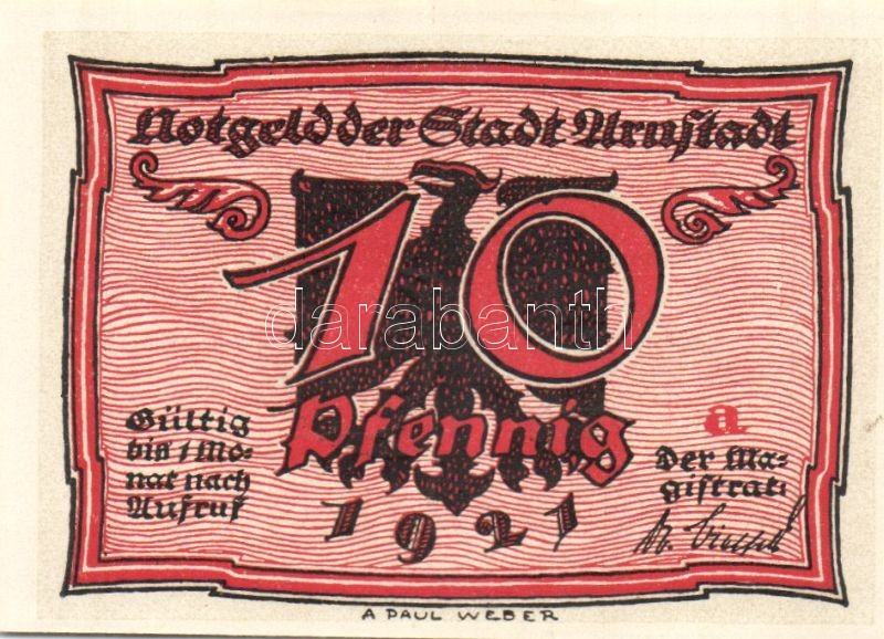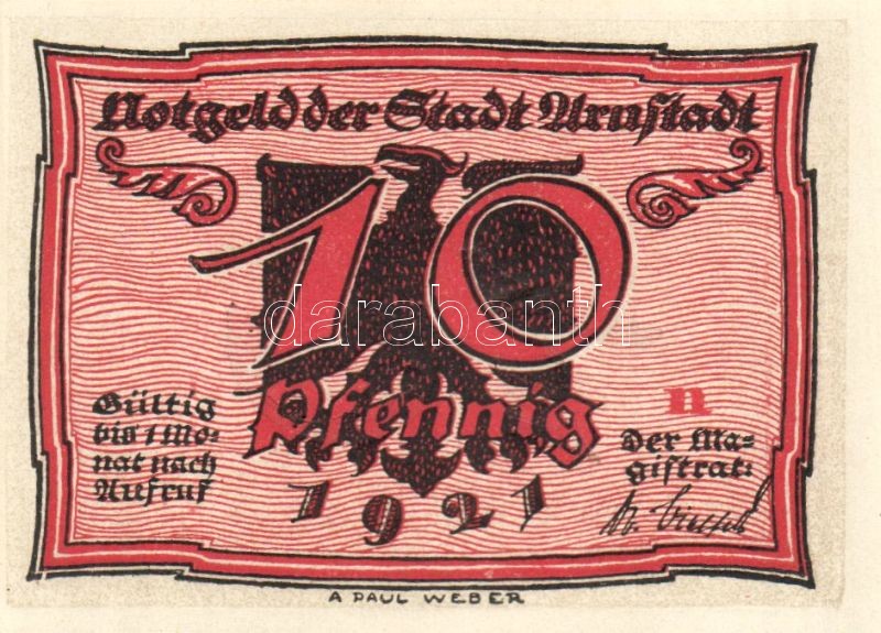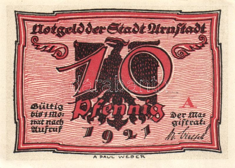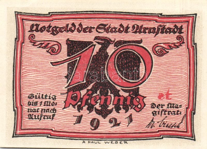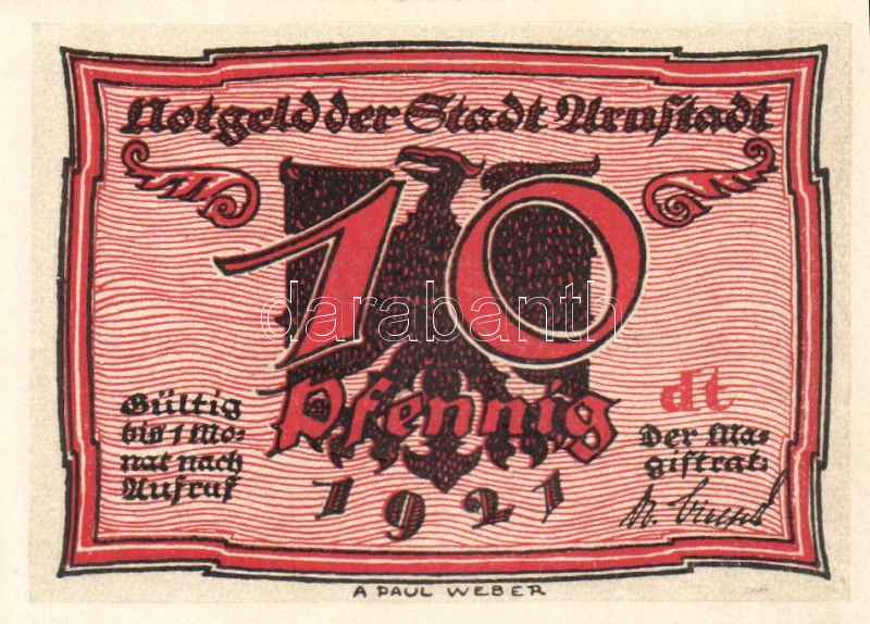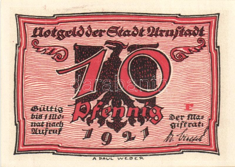 Német Birodalom/Weimari Köztársaság/ Arnstadt 1921. 10Pf(6x) 6klf db, ... https://www.darabanth.com/de/95-Fernauktion/95.0/Numismatik/~379/Nemet-BirodalomWeimari-Koztarsasag-Arnstadt-1921-10Pf6x-6klf-db-teljes-sor-TI~II218597