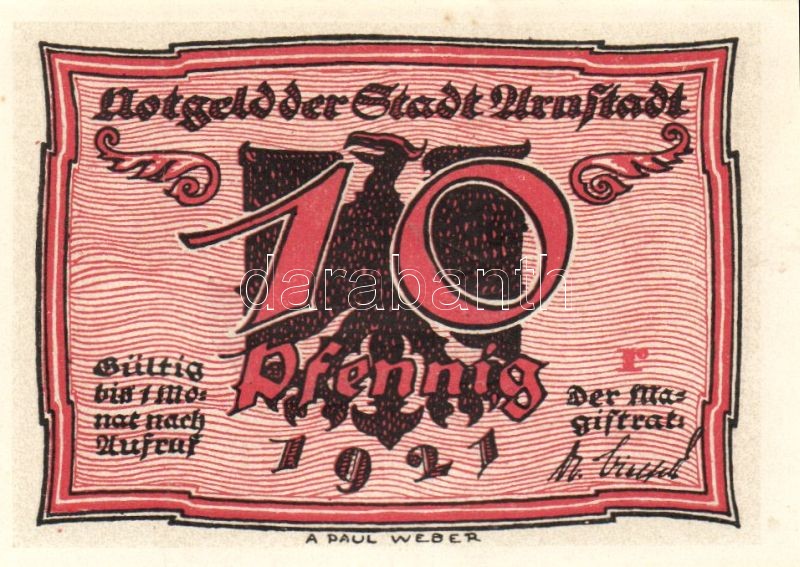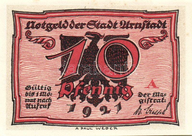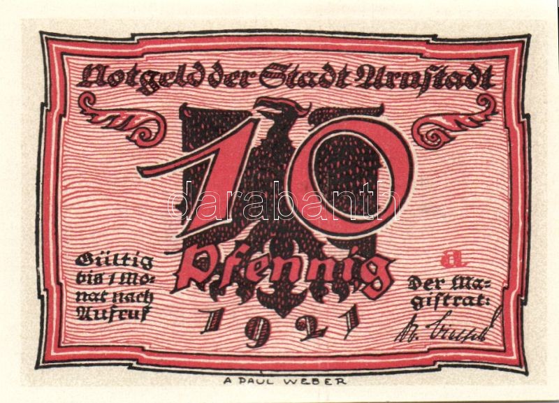 Német Birodalom/Weimari Köztársaság/ Arnstadt 1921. 10Pf(6x) 6klf db, ... https://www.darabanth.com/de/95-Fernauktion/95.0/Numismatik/~379/Nemet-BirodalomWeimari-Koztarsasag-Arnstadt-1921-10Pf6x-6klf-db-teljes-sor-TI~II219832
