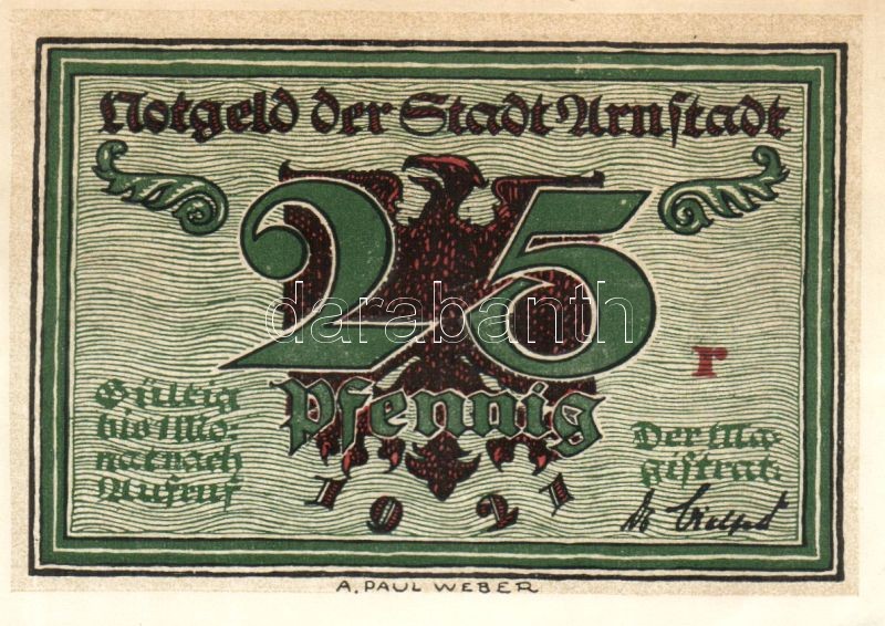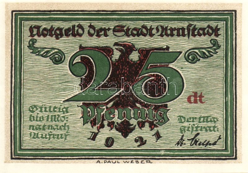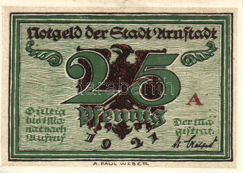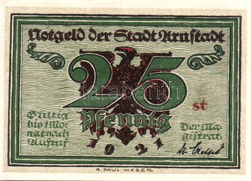 Német Birodalom/Weimari Köztársaság/ Arnstadt 1921. 25Pf(6x) 6klf db, ... https://www.darabanth.com/de/95-Fernauktion/95.0/Numismatik/~379/Nemet-BirodalomWeimari-Koztarsasag-Arnstadt-1921-25Pf6x-6klf-db-teljes-sor-TI-I-~II218598