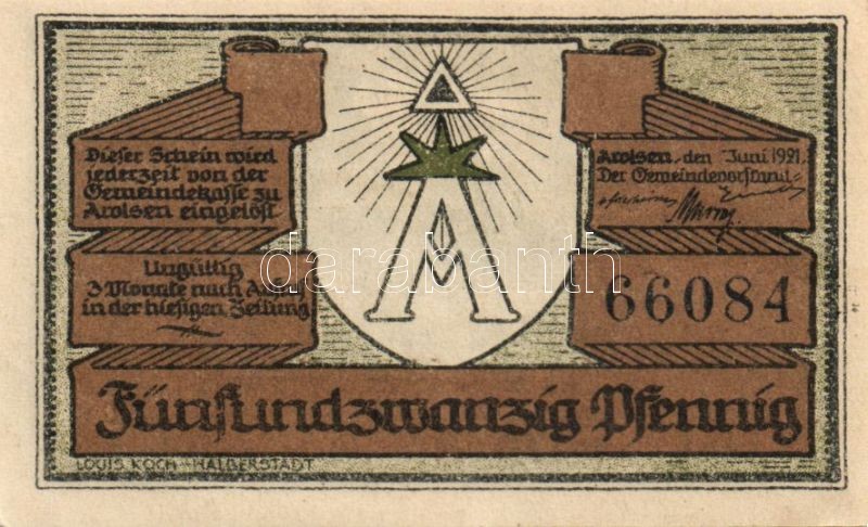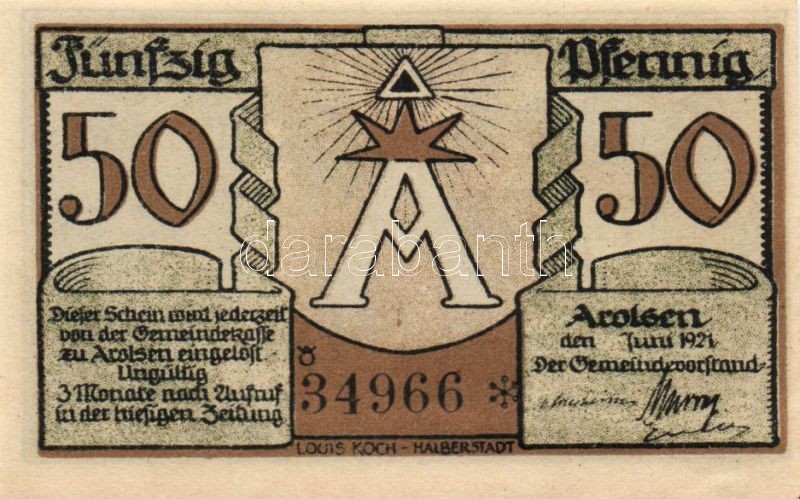Német Birodalom/Weimari Köztársaság/ Arolsen 1921. 10Pf + 25Pf + 50Pf ... https://www.darabanth.com/de/95-Fernauktion/95.0/Numismatik/~379/Nemet-BirodalomWeimari-Koztarsasag-Arolsen-1921-10Pf-plus-25Pf-plus-50Pf-3klf-db-teljes-sor-TI~II219836