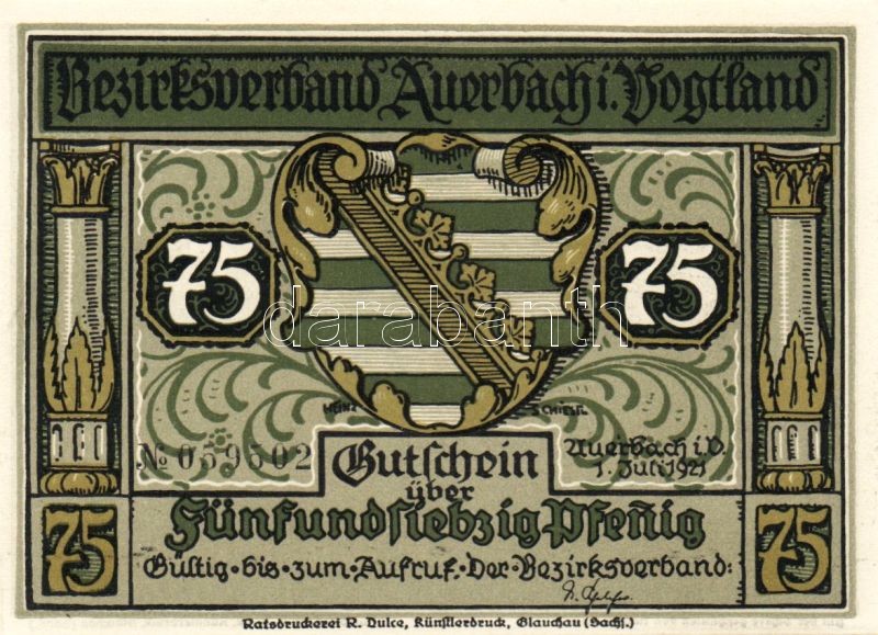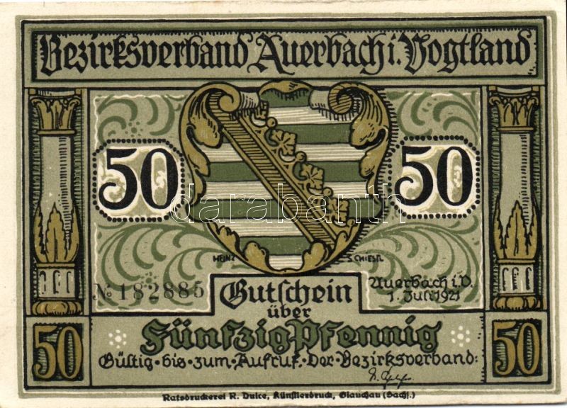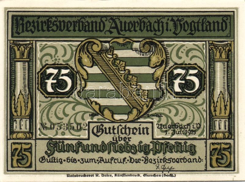 Német Birodalom/Weimari Köztársaság/ Auerbach 1921. 50Pf(3x) + 75Pf(3x... https://www.darabanth.com/de/95-Fernauktion/95.0/Numismatik/~379/Nemet-BirodalomWeimari-Koztarsasag-Auerbach-1921-50Pf3x-plus-75Pf3x-6klf-db-teljes-sor-TI~II219838