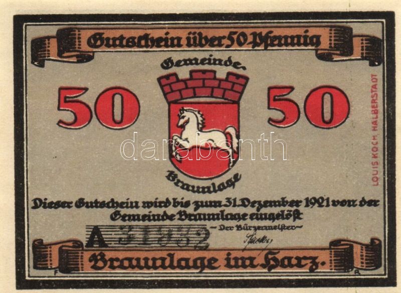 Német Birodalom/Weimari Köztársaság/ Braunlage 1921. 10Pf + 25Pf + 50P... https://www.darabanth.com/de/95-Fernauktion/95.0/Numismatik/~379/Nemet-BirodalomWeimari-Koztarsasag-Braunlage-1921-10Pf-plus-25Pf-plus-50Pf-3klf-db-teljes-sor-TI~II219424