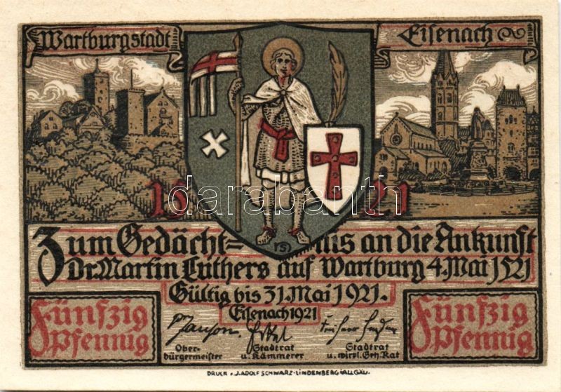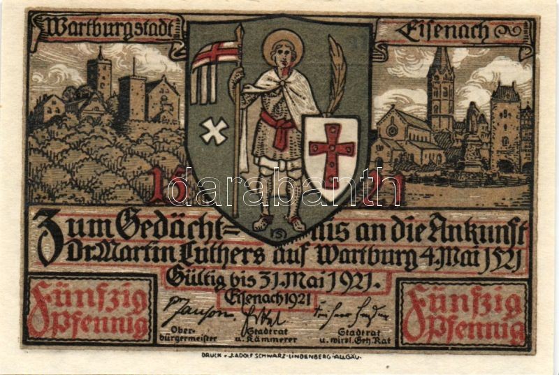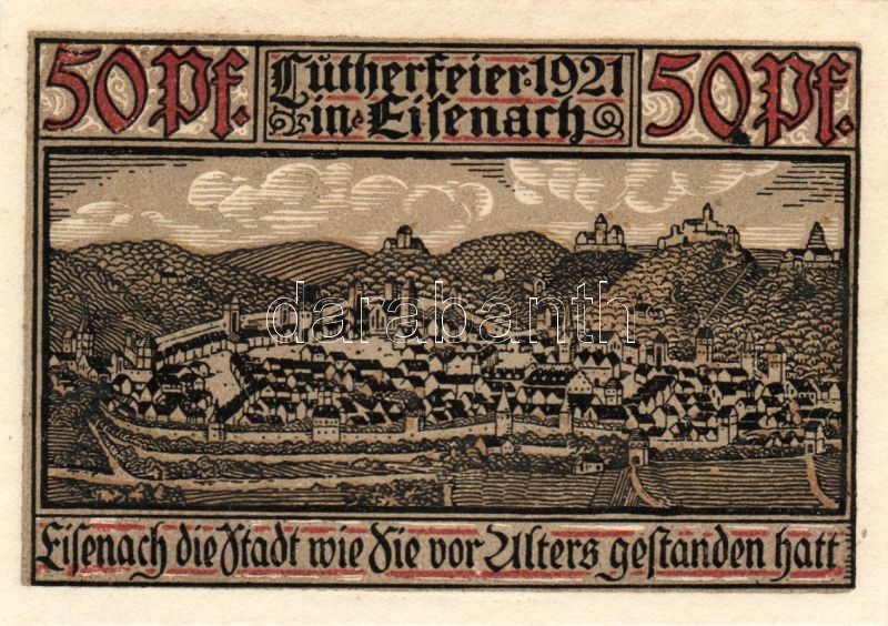 Német Birodalom/Weimari Köztársaság/ Eisenach 1921. 50Pf(6x) 6klf db, ... https://www.darabanth.com/de/95-Fernauktion/95.0/Numismatik/~379/Nemet-BirodalomWeimari-Koztarsasag-Eisenach-1921-50Pf6x-6klf-db-teljes-sor-TI~II219402