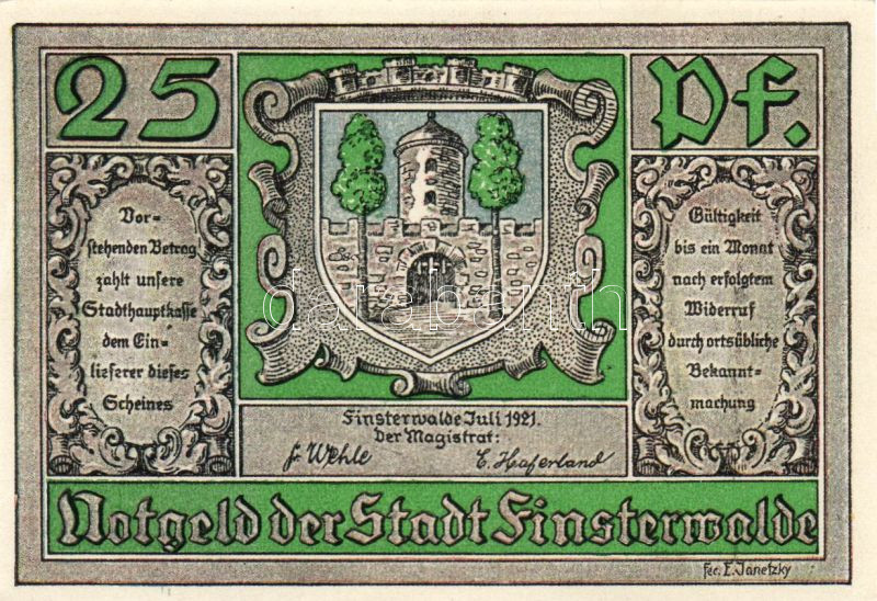 Német Birodalom/Weimari Köztársaság/ Finsterwalde 1921. 25Pf + 50Pf + ... https://www.darabanth.com/de/95-Fernauktion/95.0/Numismatik/~379/Nemet-BirodalomWeimari-Koztarsasag-Finsterwalde-1921-25Pf-plus-50Pf-plus-75Pf-3klf-db-teljes-sor-T~II219790