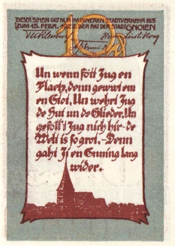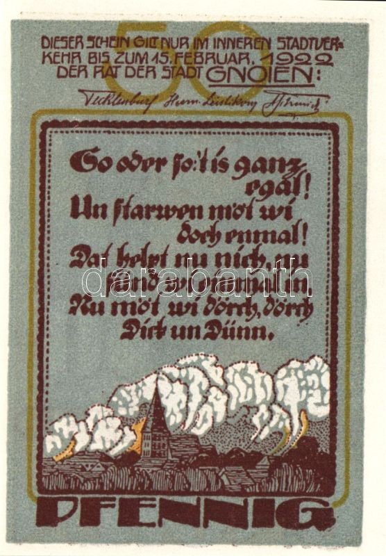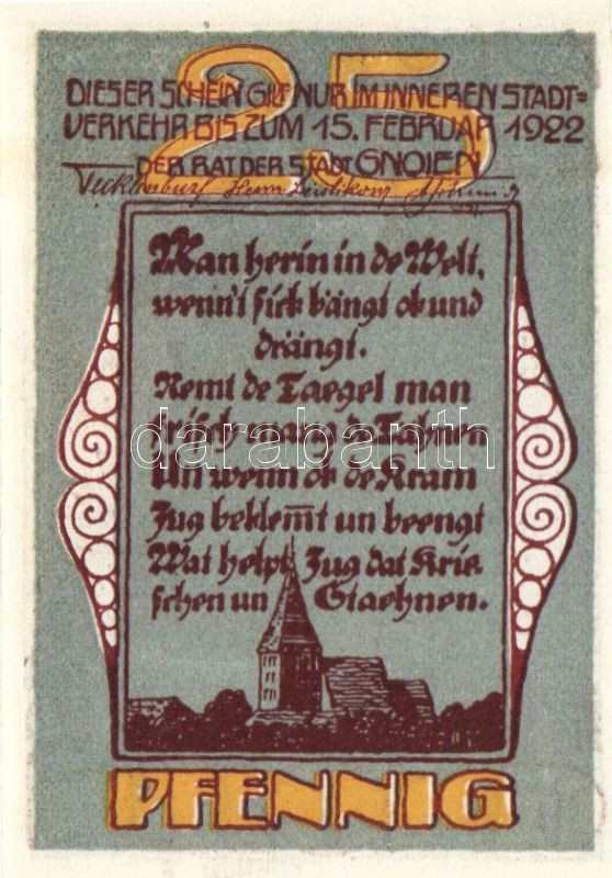 Német Birodalom/Weimari Köztársaság/ Gnoien 1922. 10Pf + 25Pf + 50Pf 3... https://www.darabanth.com/de/95-Fernauktion/95.0/Numismatik/~379/Nemet-BirodalomWeimari-Koztarsasag-Gnoien-1922-10Pf-plus-25Pf-plus-50Pf-3klf-db-teljes-sor-TI~II218583