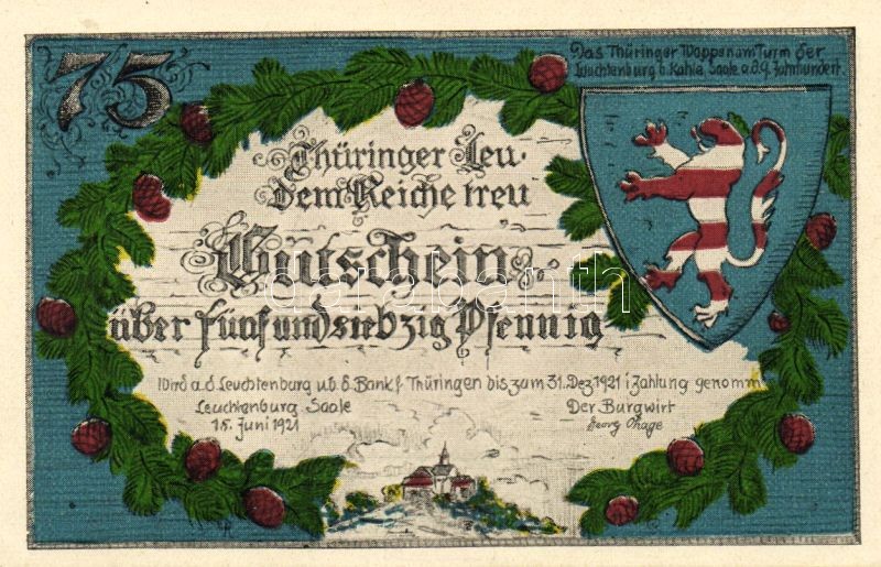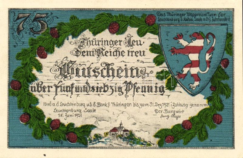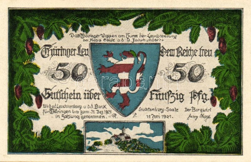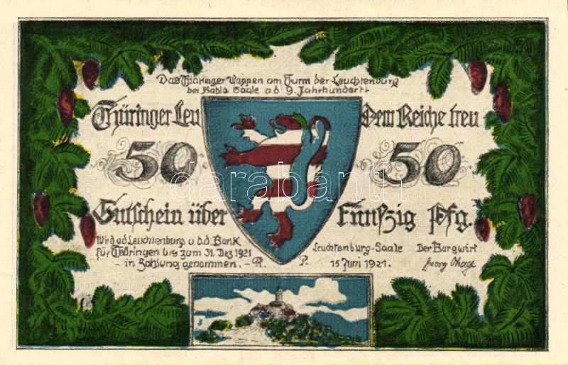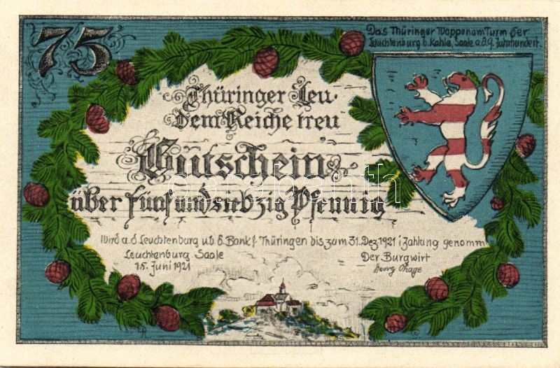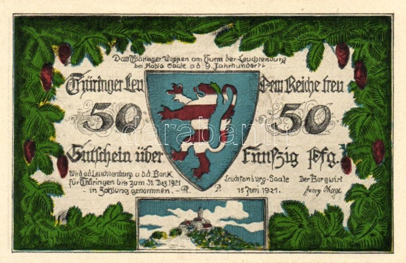 Német Birodalom/Weimari Köztársaság/ Kahla-Leuchtenburg 1921. 50Pf(6x)... https://www.darabanth.com/de/95-Fernauktion/95.0/Numismatik/~379/Nemet-BirodalomWeimari-Koztarsasag-Kahla-Leuchtenburg-1921-50Pf6x-plus-75Pf6x-12klf-db-telj~II219784