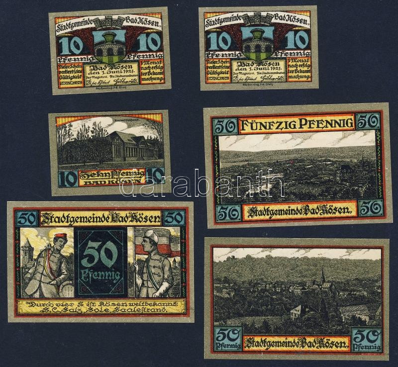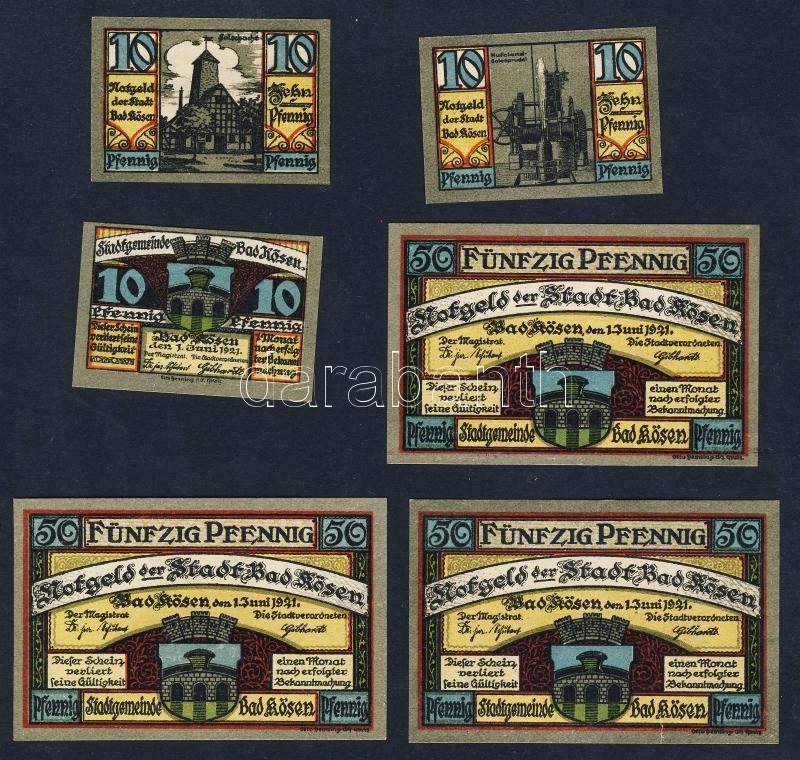 Német Birodalom/Weimari Köztársaság/ Kösen 1921. 10Pf(3x) + 50Pf(3x) 6... https://www.darabanth.com/de/95-Fernauktion/95.0/Numismatik/~379/Nemet-BirodalomWeimari-Koztarsasag-Kosen-1921-10Pf3x-plus-50Pf3x-6klf-db-teljes-sor-TI~II219419