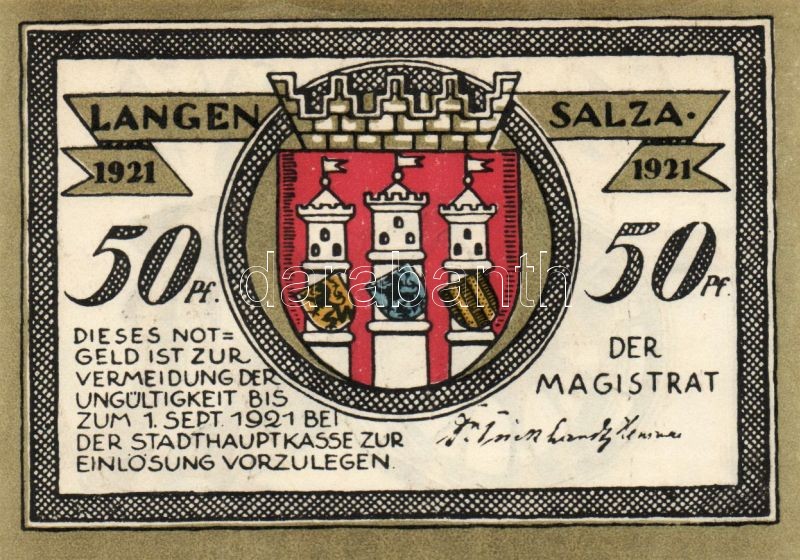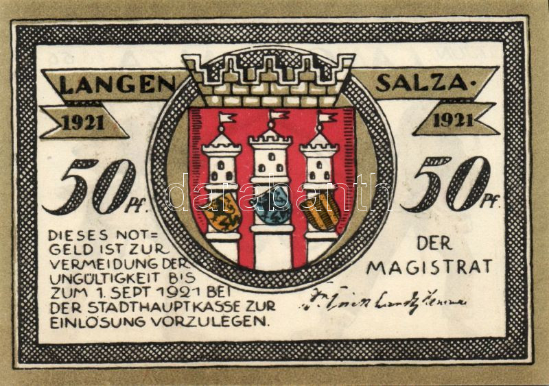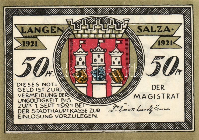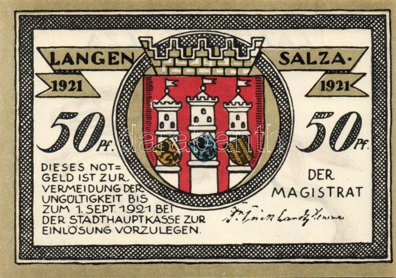 Német Birodalom/Weimari Köztársaság/ Langensalza 1921. 50Pf(6x) 6klf d... https://www.darabanth.com/de/95-Fernauktion/95.0/Numismatik/~379/Nemet-BirodalomWeimari-Koztarsasag-Langensalza-1921-50Pf6x-6klf-db-teljes-sor-TI~II219847