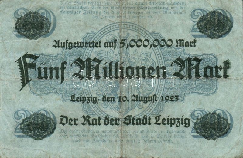 Német Birodalom/Weimari Köztársaság/ Leipzig 1918.10.17. 20.000.000M z... https://www.darabanth.com/de/95-Fernauktion/95.0/Numismatik/~379/Nemet-BirodalomWeimari-Koztarsasag-Leipzig-19181017-20000000M-zold-1923810-5000000M-~II215394