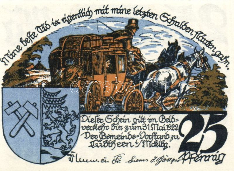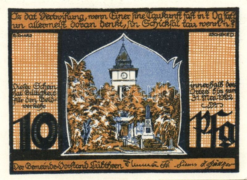 Német Birodalom/Weimari Köztársaság/ Lübtheen 1922. 10Pf + 25Pf + 50Pf... https://www.darabanth.com/de/95-Fernauktion/95.0/Numismatik/~379/Nemet-BirodalomWeimari-Koztarsasag-Lubtheen-1922-10Pf-plus-25Pf-plus-50Pf-3klf-db-teljes-sor-TI~II218579