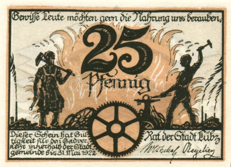 Német Birodalom/Weimari Köztársaság/ Lübz 1922. 10Pf + 25Pf + 50Pf 3kl... https://www.darabanth.com/de/95-Fernauktion/95.0/Numismatik/~379/Nemet-BirodalomWeimari-Koztarsasag-Lubz-1922-10Pf-plus-25Pf-plus-50Pf-3klf-db-teljes-sor-TI~II218575