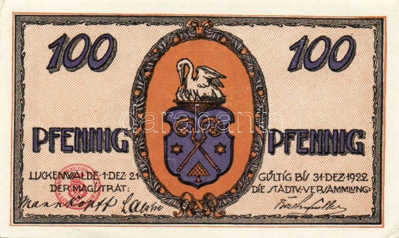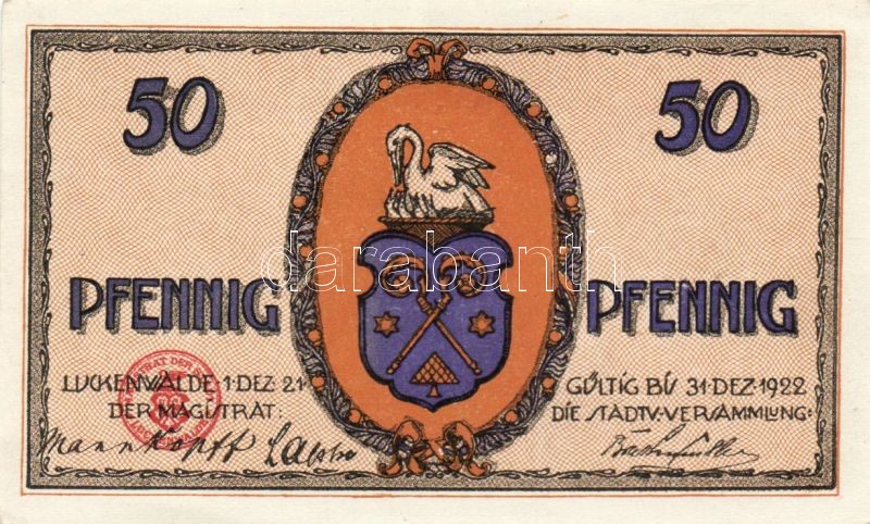 Német Birodalom/Weimari Köztársaság/ Luckenwalde 1921. 25Pf + 50Pf + 1... https://www.darabanth.com/de/95-Fernauktion/95.0/Numismatik/~379/Nemet-BirodalomWeimari-Koztarsasag-Luckenwalde-1921-25Pf-plus-50Pf-plus-100Pf-3klf-db-teljes-sor-T~II219810