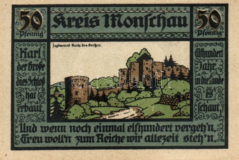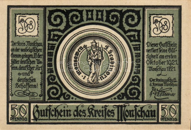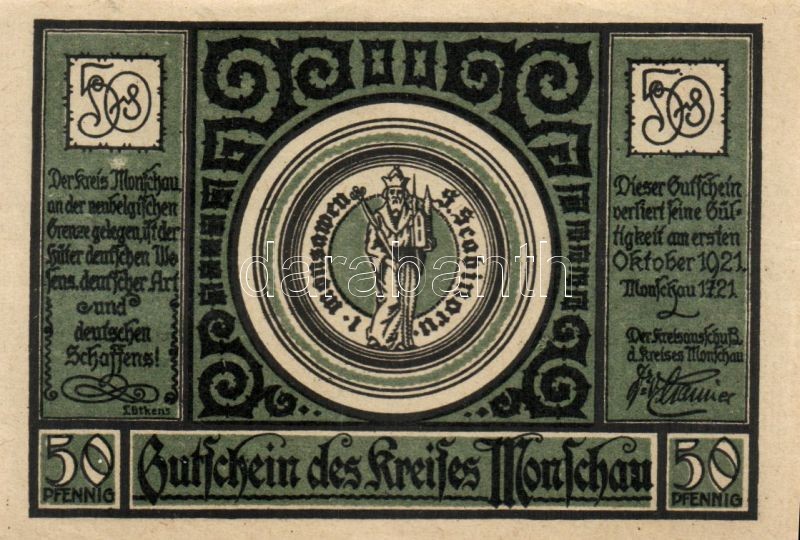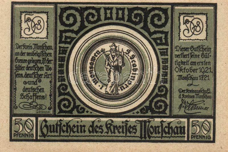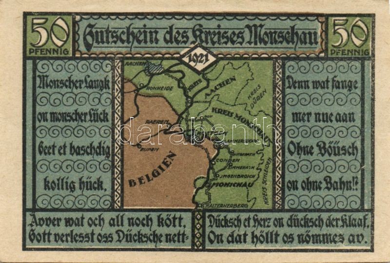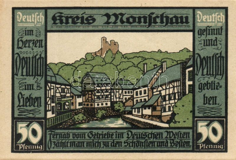 Német Birodalom/Weimari Köztársaság/ Monschau 1921. 50Pf(3x) 3klf db, ... https://www.darabanth.com/de/95-Fernauktion/95.0/Numismatik/~379/Nemet-BirodalomWeimari-Koztarsasag-Monschau-1921-50Pf3x-3klf-db-teljes-sor-TI~II218559