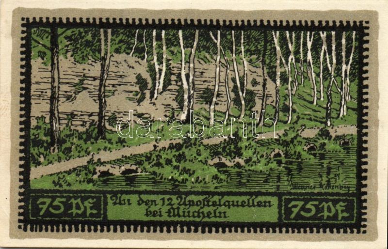 Beschreibung: Német Birodalom/Weimari Köztársaság/ Mücheln 1921. 25Pf + 50Pf(3x) + 75Pf 5klf db, teljes sor T:I,I-
