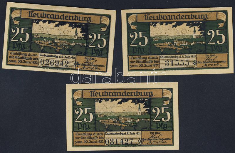 Német Birodalom/Weimari Köztársaság/ Neubrandenburg 1921. 25Pf(3x) + 5... https://www.darabanth.com/de/95-Fernauktion/95.0/Numismatik/~379/Nemet-BirodalomWeimari-Koztarsasag-Neubrandenburg-1921-25Pf3x-plus-50Pf3x-plus-75Pf3x-9klf-db~II218588