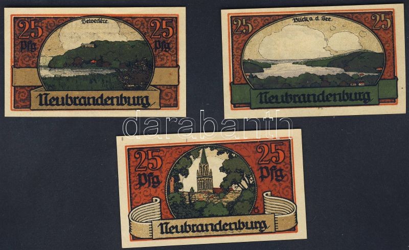 Beschreibung: Német Birodalom/Weimari Köztársaság/ Neubrandenburg 1921. 25Pf(3x) + 50Pf(3x) + 75Pf(3x) 9klf db, teljes sor T:I