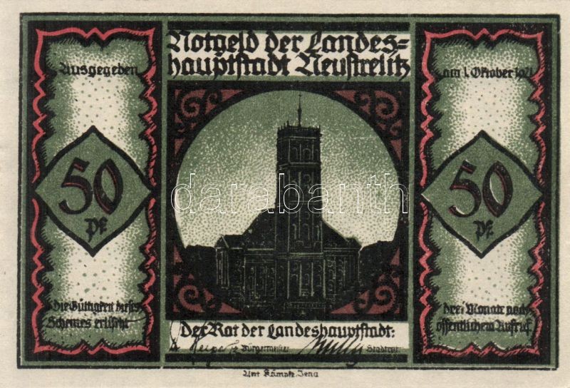 Német Birodalom/Weimari Köztársaság/ Neustrelitz 1921. 50Pf(6x) 6klf d... https://www.darabanth.com/de/95-Fernauktion/95.0/Numismatik/~379/Nemet-BirodalomWeimari-Koztarsasag-Neustrelitz-1921-50Pf6x-6klf-db-teljes-sor-TI~II218586