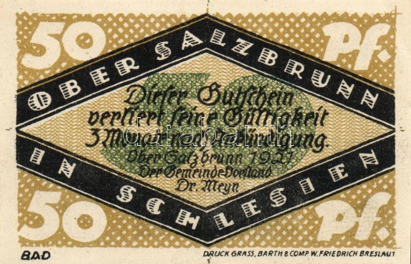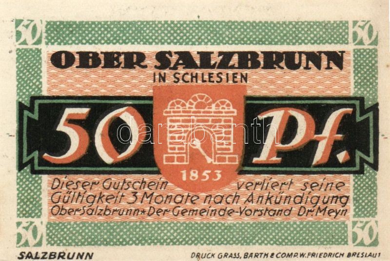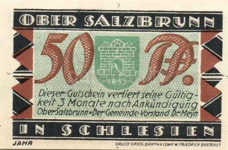 Német Birodalom/Weimari Köztársaság/ Ober-Salzbrunn 1921. 50Pf(5x) 5kl... https://www.darabanth.com/de/95-Fernauktion/95.0/Numismatik/~379/Nemet-BirodalomWeimari-Koztarsasag-Ober-Salzbrunn-1921-50Pf5x-5klf-db-teljes-sor-TI-I-~II219829