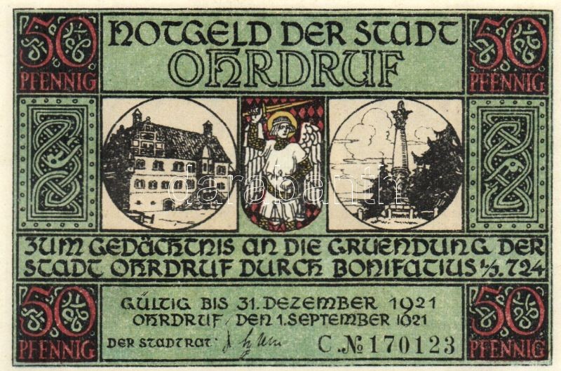 Német Birodalom/Weimari Köztársaság/ Ohrdruf 1921. 50Pf(6x) 6klf db, t... https://www.darabanth.com/de/95-Fernauktion/95.0/Numismatik/~379/Nemet-BirodalomWeimari-Koztarsasag-Ohrdruf-1921-50Pf6x-6klf-db-teljes-sor-TI~II218600