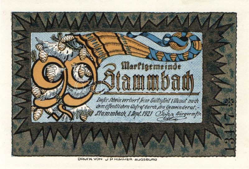 Beschreibung: Német Birodalom/Weimari Köztársaság/ Stammbach 1921. 25Pf + 50Pf + 75Pf + 99Pf 4klf db, teljes sor T:I