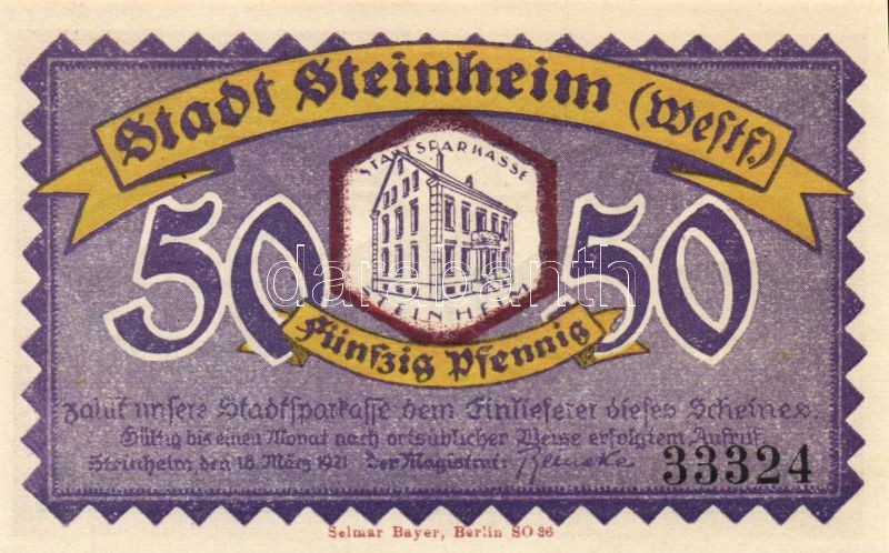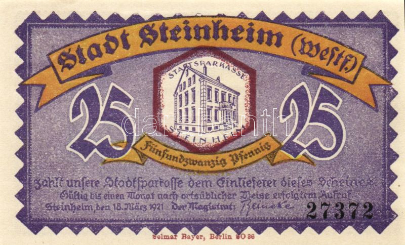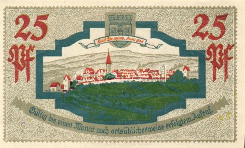 Német Birodalom/Weimari Köztársaság/ Steinheim 1921. 25Pf + 50Pf + 1M ... https://www.darabanth.com/de/95-Fernauktion/95.0/Numismatik/~379/Nemet-BirodalomWeimari-Koztarsasag-Steinheim-1921-25Pf-plus-50Pf-plus-1M-3klf-db-teljes-sor-TI~II219376