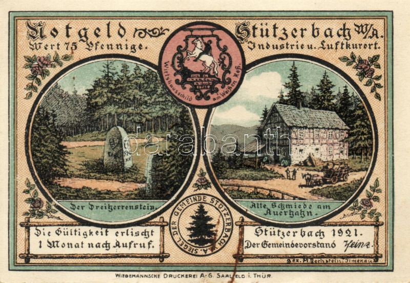 Német Birodalom/Weimari Köztársaság/ Stützerbach 1921. 50Pf(5x) + 75Pf... https://www.darabanth.com/de/95-Fernauktion/95.0/Numismatik/~379/Nemet-BirodalomWeimari-Koztarsasag-Stutzerbach-1921-50Pf5x-plus-75Pf2x-7klf-db-teljes-sor-~II219408