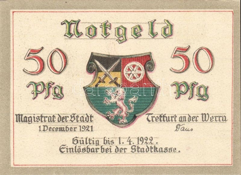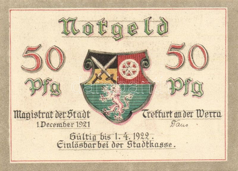 Német Birodalom/Weimari Köztársaság/ Treffurt 1921. 50Pf(6x) 6klf db, ... https://www.darabanth.com/de/95-Fernauktion/95.0/Numismatik/~379/Nemet-BirodalomWeimari-Koztarsasag-Treffurt-1921-50Pf6x-6klf-db-teljes-sor-TI~II219842