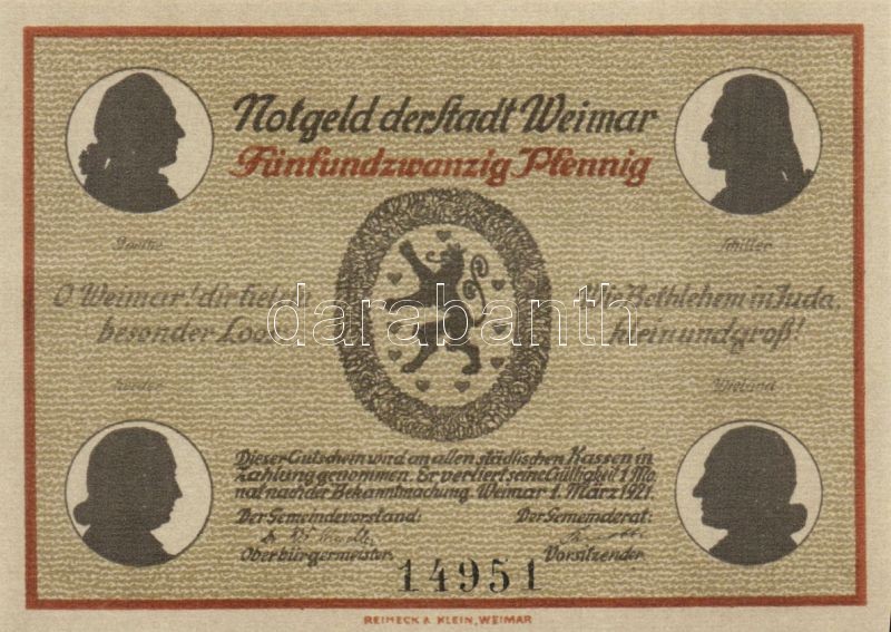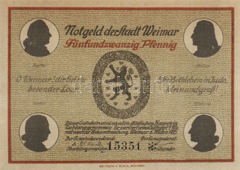 Német Birodalom/Weimari Köztársaság/ Weimar 1921. 25Pf(6x) 6klf db, te... https://www.darabanth.com/de/95-Fernauktion/95.0/Numismatik/~379/Nemet-BirodalomWeimari-Koztarsasag-Weimar-1921-25Pf6x-6klf-db-teljes-sor-TI~II218590