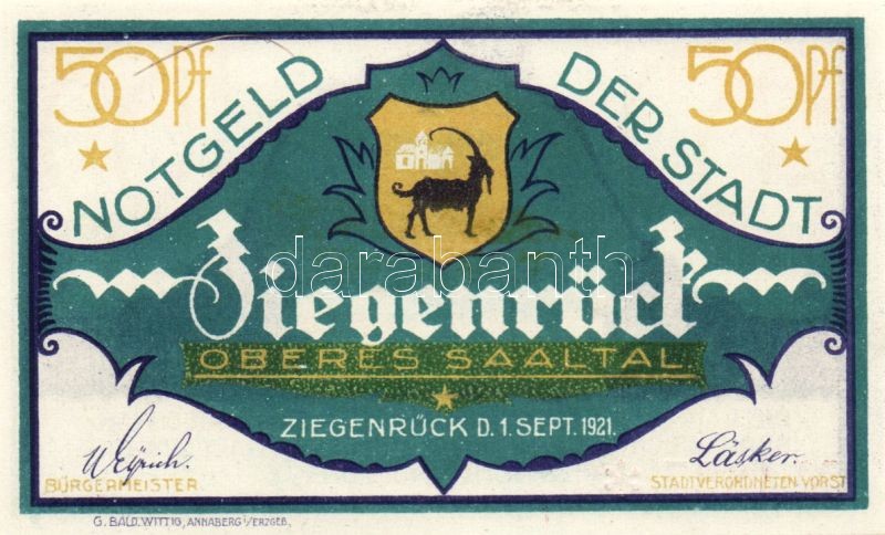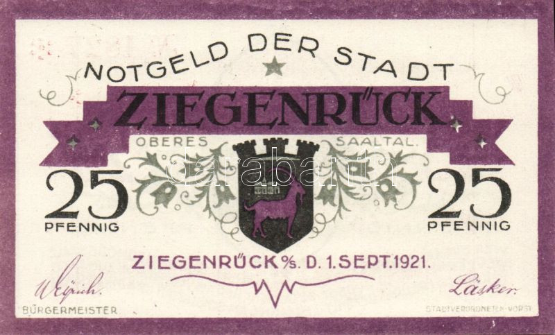 Német Birodalom/Weimari Köztársaság/ Ziegenrück 1921. 25Pf + 50Pf + 75... https://www.darabanth.com/de/95-Fernauktion/95.0/Numismatik/~379/Nemet-BirodalomWeimari-Koztarsasag-Ziegenruck-1921-25Pf-plus-50Pf-plus-75Pf-3klf-db-teljes-sor-T~II219418